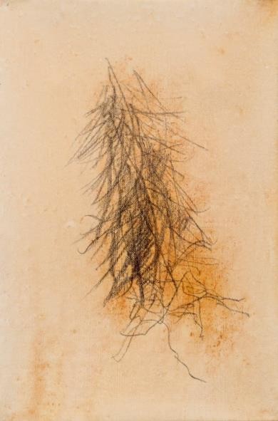 子晴乙木不仅延续了这一方向,他还发展了一种自己的抽象与依据的连接关系,即他的抽象图形经常是根据某一日常的具体意识,但他并未以具象表现日常叙事,而是将这一具体意识还原为一种抽象笔法,同时穿插以介于抽象与具象之间的原始记号式的图形。这一方式产生了一种后抽象与意象的临界区域的图形交叉,使意象的东方主义拉回到一种个人性的图形意识。