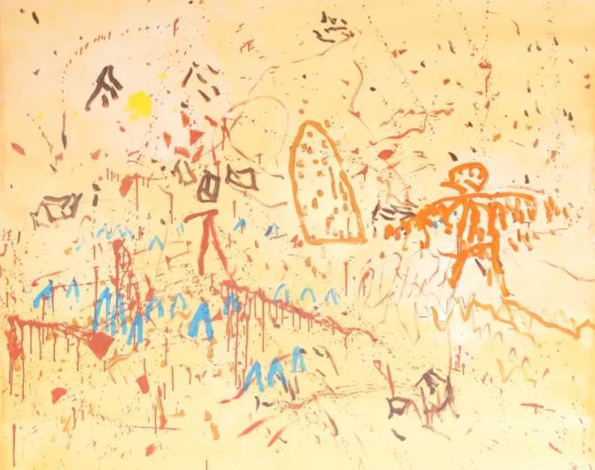 这接近于一种托姆布利(Cy Twombly)意义上的“后抽象”。即抽象艺术不再作为一种形式主义,不以几何主义或书法性自身的形式为中心,抽象只是一种具体的意象联想或无意识感性的表达形式。前者在于抽象形式不是出于形式主义规则,而是抽象语言依据一种具体叙事。就像澳大利亚的土著绘画,其抽象的形式产生于一种神话或日常叙事的转换;或者如史前的岩画,依托图形记号来表达一种神话或灵性的无意识。后一种方式,在上一世纪三十年代的超现实主义克利等人的自动书写就已出现。