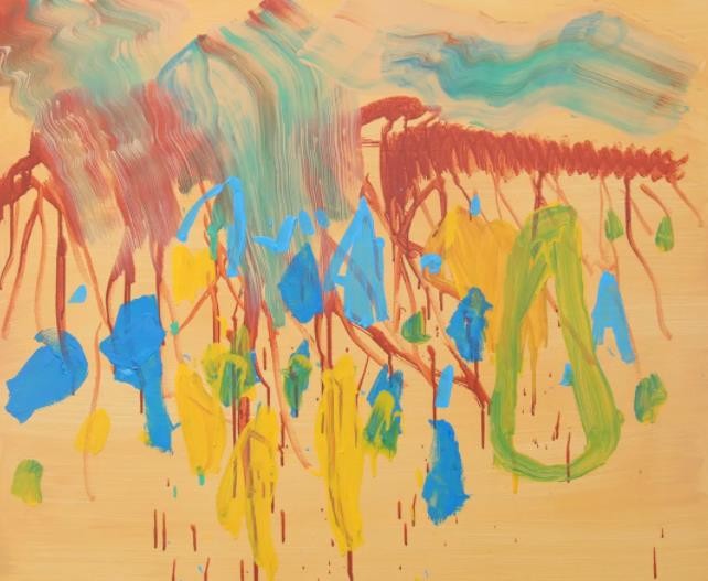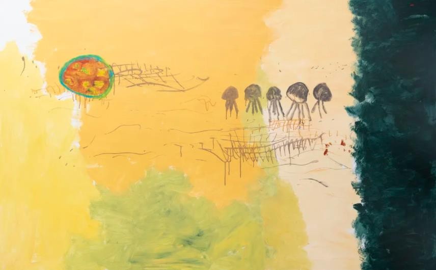 这是一种绕开以观念和形式主义为依据而重新回到抽象直接性的尝试,即抽象回到一种意念的无意识、意象的联想以及神经-心理的手动机制下抽象与色彩的直接形式,虽然画面上是一种抽象的笔触以及带有意象特征的抽象图形,但这一抽象语言却并不是为抽象而抽象,而是通过抽象语言反映对具体叙事的抽象感性或者即时的临场灵动。这是从克利到托姆布利的一个抽象方向,即希望抽象回到一种类似于史前岩画的神话叙事以及灵性无意识,或前观念的幼稚纯真,但又是一种抽象形式。