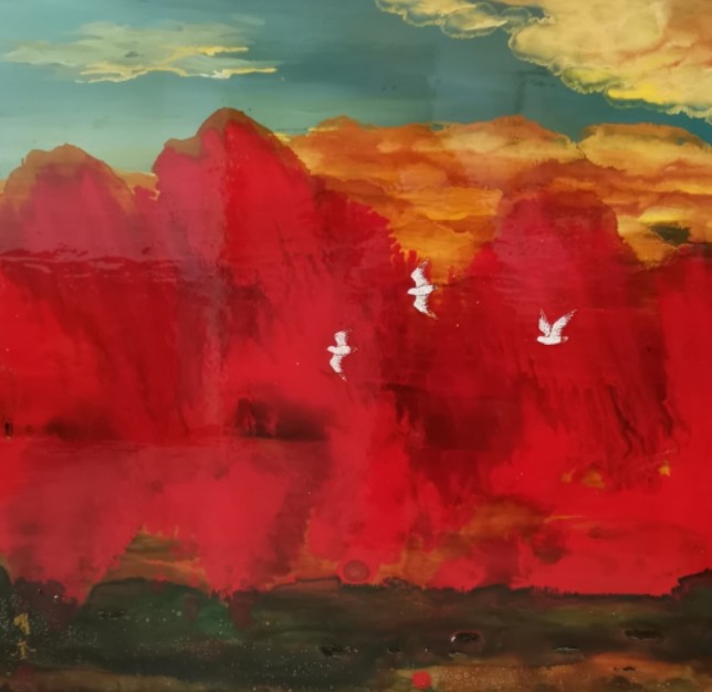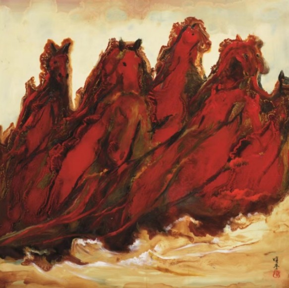 技道相生。先生开创的泼漆画法不仅是对媒材语言的革命性突破,更承载着宋元以来“以艺载道”的文人精神。其笔下的“绿肥红瘦”意象,既是对易安词学的视觉转译,亦是对自然哲学的诗性观照。