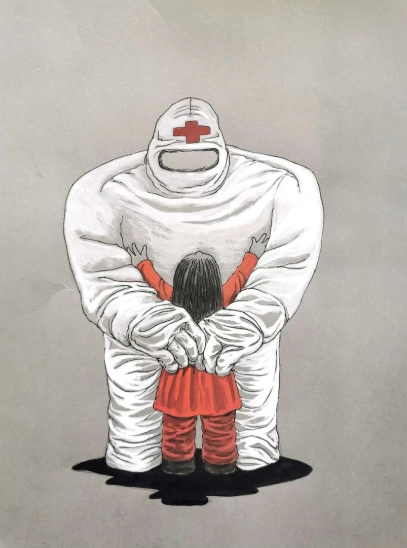 2020年春,新冠病毒以迅雷之势蔓延全球。谢济斌在此背景下,创作了一系列“抗疫”作品,以其独特的视角展现了疫情下的生活百态。“Hahaha”的主题构想源于戏谑之词,亦如同静观其作品之感,总在不经意间让人重拾生活的喜悦,一扫新冠下的阴霾之云。