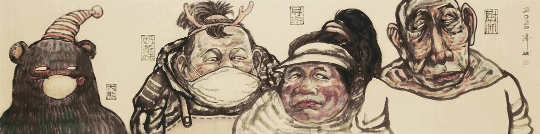 本次展览除“抗疫”系列,亦是谢先生经年创作的绘画总结与回顾。我们可见其不羁的童年与青春,可见他在漫漫长路上下求索的水墨精神。他说:“我是个对生活充满热爱,乐观且简单的人,在题材上我更愿意用‘诙谐幽默’的方式去选择记录。我想表现的水墨,不是通常肉眼可视的表象,而是身心所触动的抽象的情绪和精神的共鸣。”