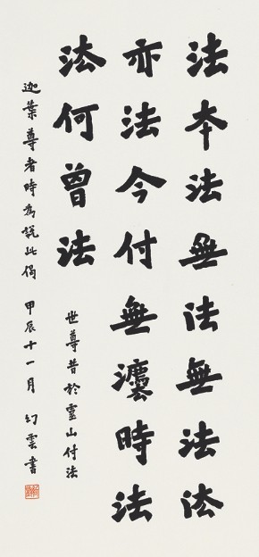 一心,1971 年生,是当代资深弘一研究专家,自幼随父学习书法,临习碑帖,奠定深厚的传统基础。1990 年至 1993 年间,他先后在泉州承天寺、开元寺依止弘一大师的亲传弟子圆拙、妙莲二位法师,成为弘一大师正脉再传弟子。此段殊胜因缘,使他深入了解弘一大师的身教与行谊,并以书法作为体证与传承弘一大师精神的方便之门。