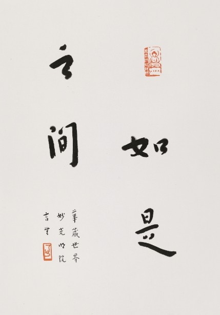 《八大人觉经》云:「多欲为苦,生死疲劳,从贪欲起;少欲无为,身心自在。」此正是弘一大师在戒律中得以修持的根本。此次「如是之间」的展题,缘起于一心师于去岁佛诞始七七禅修断食的过程中,曾有境缘示现八个「如是」(如是因、缘、果、幻、法、相、义、观),令其在断食中感悟到了生脱死的法喜,亦为作品赋予深邃的精神意蕴。