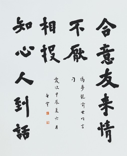 一心的弘体书风,被公认为深得弘一大师之精髓。他所追求的并非形似,而是将修持与书艺融通于心。从出家后近似苦行的生活,到今日恒常的参禅修行,他始终一心不乱,甘之如饴。也因此,他的书艺表现带有一种独特的禅境,让弘体书法不仅重现笔墨之姿,更凝聚出一股灵魂与精神的力量。