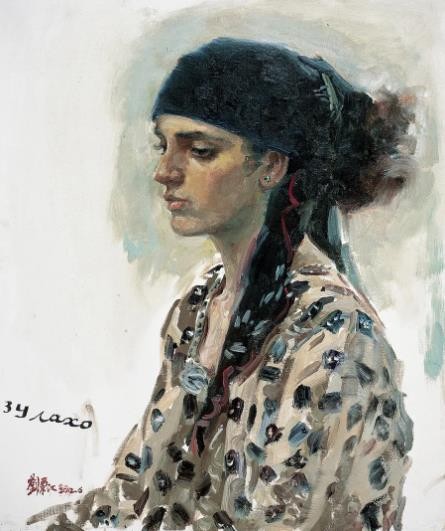 比如极细的管状制图笔,这本来是建筑师用来画极细线条的笔。刘秉江先生却用来画人物速写。在一个五分硬币大小的维吾尔少女头像中,左眼右眼两排睫毛用了十几根线,居然是每根睫毛都有自己的形状,各有自己的姿态。像幼儿园小朋友,即使排排坐好,也永远有调皮捣蛋的在伸腿抬胳膊动来动去。像是少女内心世界萌动的不经意流露。初看到了这两排七上八下的睫毛,我竟瞠目结舌。从来没有想过睫毛居然可以这样画!这种精湛当然出自刘秉江先生过人的精细观察和体味,但也得益于对工具的掌控。很难设想一支扁毛油画笔,一支粗马克笔或一支软蜡笔,是绝对画不出这两排睫毛因交叉排列而产生的动感。换了别人,即使用一支细笔,通常也是三五十根睫毛整齐平行,排成军队立正稍息般的形态。