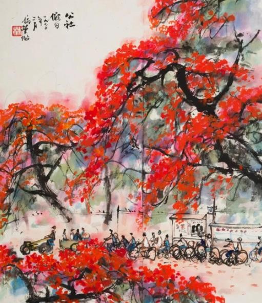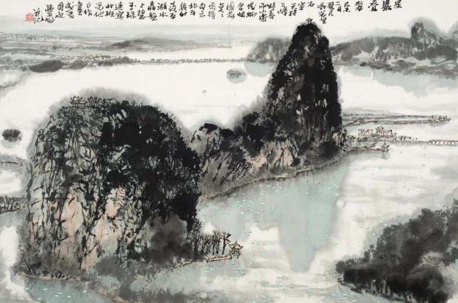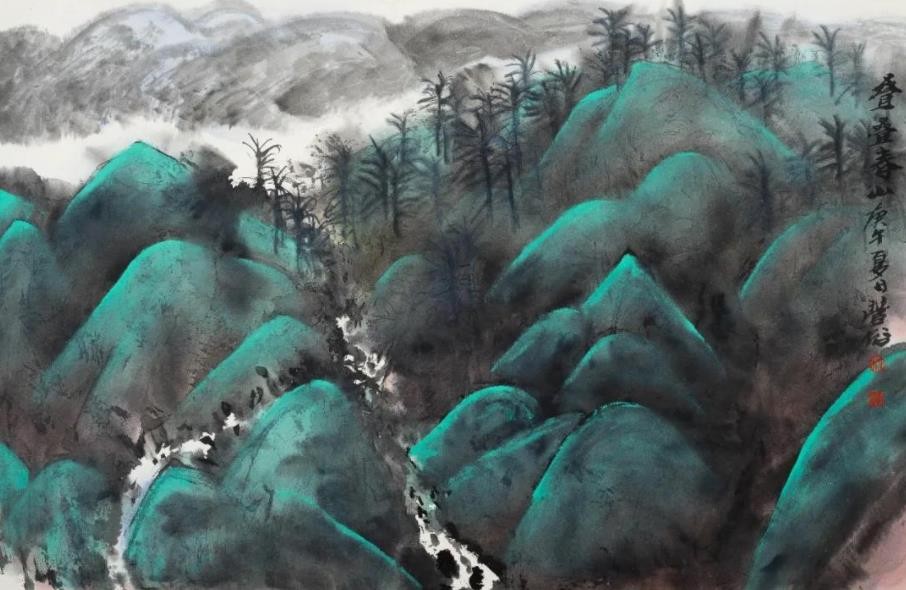1977年和1978年间,林丰俗作为关山月、黎雄才领衔的毛主席纪念堂国画创作组广东组的画家参与了《遵义曙光》《农讲所颂》的创作工作。先后在湘、黔、陕、川、滇等多省深入生活和实地写生。岭南之外的自然风光,或雄奇秀丽,或幽深莫测,或浩淼多姿,对于林丰俗而言,这一段写生经历,是他对祖国山河不同地貌风光的亲历体验,同时也是对自身笔墨语言的一次检验,正可谓“读万卷书,行万里路”。不同地貌所呈现不同景观特点,在一定程度上也促成了林氏对于笔墨语言的自我调整。尽管如此,在林丰俗的心中,名山大川于他而言,只是匆匆过客,不如长期生活期间的“自家山”亲切且充满感情。但也正是在有了“身行万里半天下”的经历之后,他更坚定了以“自家山”为主题的创作取向,也更为清晰地认知了自我的艺术定位和探索方向。