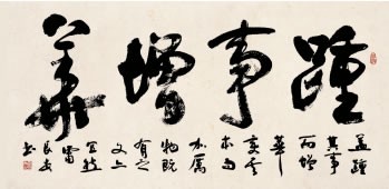平心而论,仁兄的书法真草隶篆行五体兼备,博采众长,融会贯通,以行见长。经过长年的书法探索与实践,他的书法融篆籀之奇趣与圆润,存隶书之浑厚与飘逸,汇魏碑之朴拙与奇伟。书法作品重心平稳,参差错落,疏密匀称,枯湿相宜,心到笔至,一气呵成。仁兄的笔势顺传统而来,背教条而去,恪守传统而不一味泥古,蹊径另辟,横竖变化丰富,浓淡大小有度,骨力挺拔雄健稳重,多有创意少有束缚,真率简朴不失法度,表现出一种大智若愚、归朴返真的审美意境,形成了雄浑大气,端庄厚重、典雅隽秀的美学风格。