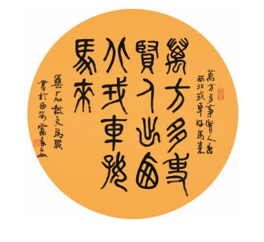 在当前各种『大师』排排坐,无边『著名』滚滚来的喧嚣年代,仁兄身居陋室探笔墨,三尺书桌写孤傲。他的孤独与广博,偏执与傲慢,任性与才情,使他沉浸于中国传统文化的砚田墨海之中,享天地之精华,育万物之灵性,鹅咏天歌稚趣真,挥毫墨海寄情深。仁兄是书法实践家,每天洗砚临池,挥翰成风,坚持不懈,不分春夏与秋冬。甲骨篆籀,烂熟于心,提笔创造,浑然天成,习二王贴,临百家碑,入木三分,神型兼备,其笔力功底之深,文化积淀之厚,确实令我敬佩。他的书法流露出古朴与典雅,难能可贵的是,他的作品在传统美学的基础上融入了现代美学的意识,装饰性强,美感十足,从而成为与时俱进、古为今用的书法典型。我以为,书法观念更新是历朝历代书法家自由的体现和个性的发挥,正是一代又一代书法更新的出现,才形成了博大精深的书法传统。