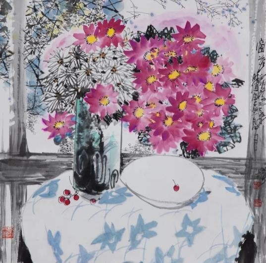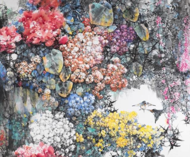 柯桐枝热爱色彩,以“好色”闻名。在他的作品之中,有姹紫嫣红的牡丹、艳丽夺目的杜鹃、洁白如玉的玉兰,还有金灿灿的秋菊、红艳艳的木棉和香溢四处的金桂……他用丰富的色彩发挥着无限的想象空间,创造着不同的艺术意境,富丽庄重的、高雅素净的、清新唯美的,各有妙境,既立体又明快,既大气又鲜活。