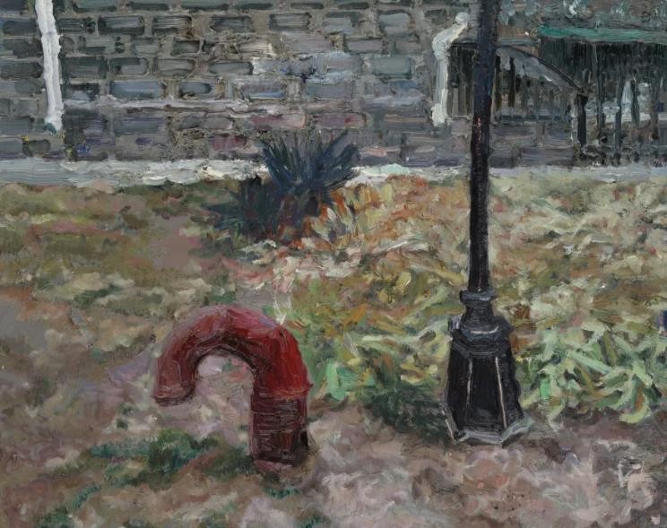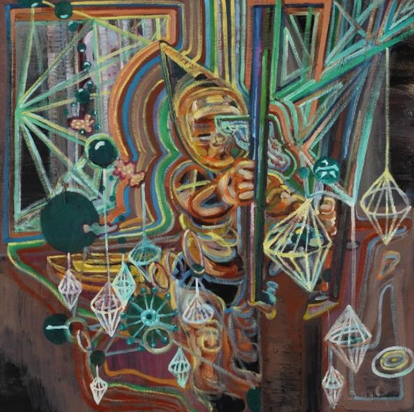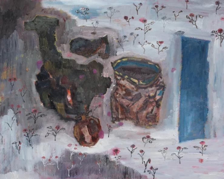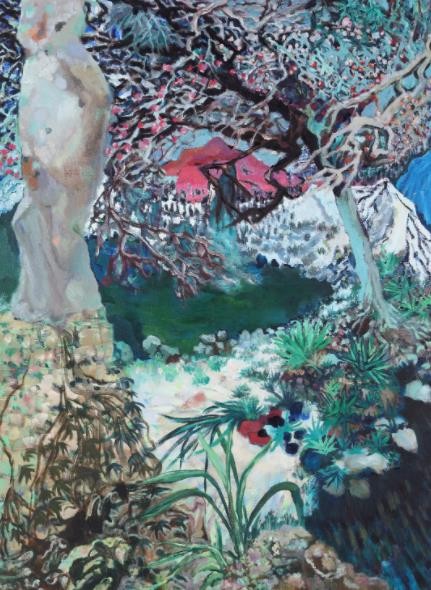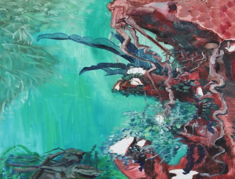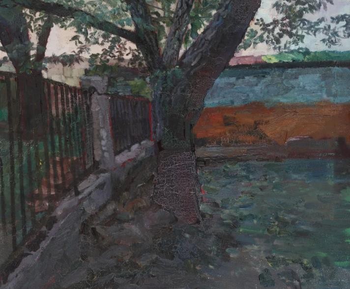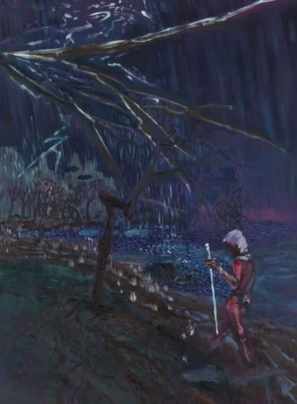 我很喜欢这种使人发现了身体感官漏洞的作品,因为你会突然遗忘刚刚在作品的哪里看见了什么,然后又会回头去寻找。在看张晚晴的作品的时候,这样的感觉又出现了,当我在《隐身》这副作品中刚刚找到画中人物后再去看其他细节的时候,就又忘记了画中好像还有一个人的存在,又会回头去看,就这样反复,盯着画看很久,推测其中发生的故事,寻找可能隐藏在画中的其它可能。再延续着这样的心境接着看其他的作品,接着寻找.....,有的笔触如风拂过稻田,但你又觉得那些随风舞动的蓬草里,似乎还藏匿着其他什么生物委居于其中。带着这样的探索的心态看完了作品,已然觉得自己好像成为站在山巅的旅者,俯瞰了山下的磅礴伟岸景色,但同时也洞悉了那些风吹草动的微妙中隐匿着的波澜壮阔。