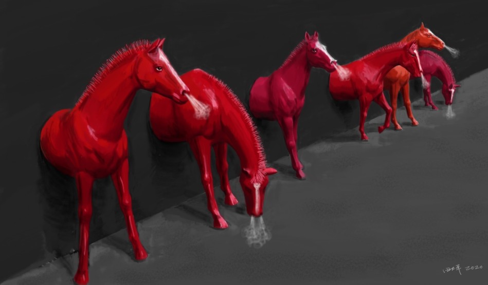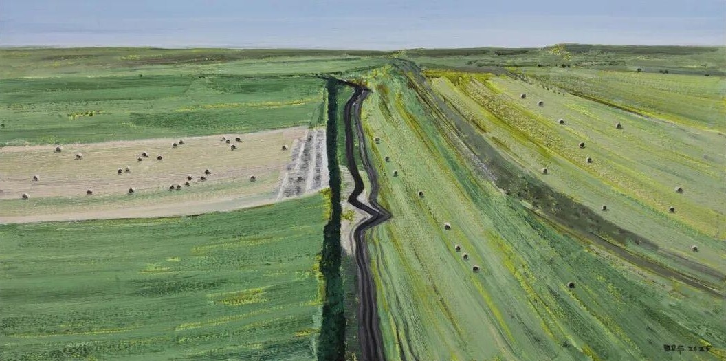 时间过得真快,转瞬间四十一年过去了, 期间卫平曾来过北京,我们曾有短暂的接触,我知道他毕业后回了东北,在哈尔滨师范大学任教。而他的作品我则时常在一些传媒中看到 。油画已成为他的主业,他的油画其题材、意象、 色调、尤其是他的构图,均极独特,具有极强的个人风格。中国的油画受西方印象派及其之后的诸流派的影响较重,另一有深刻影响的是俄罗斯的油画,绝少自己的品格。吴冠中先生曾倡导油画的民族化,他并且身体力行,已成就中国油画的印象。吴先生之外,常玉是画出中国气派的油画家,他们之外够得上有中国气派的油画家就诚哉寥寥了。在我看来卫平是画出了中国印象的一个。他与常玉和吴冠中不同,他多以养育其成长的黑土地为题,他的画有如黑土地的质朴和厚重。卫平之前,我不记得还有谁画出过黑土地的这番情景。他是对黑土地投入的情感最多,认知最深刻,关怀最细腻,视角最独特的油画家,他是黑土地的行吟者,把那片土地宽阔、深厚、醇扑、多情的生存状态多角度的、由远及近的、色彩斑斓的品格呈现在人们面前,倾吐着一个黑土地的儿子对黑土地的情恋。卫平画得很多,像一首长诗,有着章节,一段一段地徐徐展开,呈现出黑土地的万千景象。黑土地是中国大地上的黄钟大吕,它的声音的厚实是那样的不同凡响,卫平把它们都呈现给大家了。