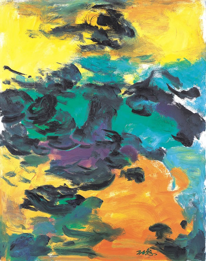 一九九零年,张功慤在六十六岁时远赴美国,终于看到了他苦苦追求的光与色,看到了抽象表现主义大师杰克逊·波洛克、弗朗兹·克兰、威廉·德库宁、克莱福特·斯蒂尔的原作。我想,当他刹那间看到这些作品时的心情,已经远远超越了艺术。在巍巍中国的文艺领域,有许许多多淹没在历史风雨中的张功慤,他们顽强地度过了被时代所辜负的岁月,当他们面对梦想成真的那一刻,既是“相见恨晚”,又是“幻境人生”。此刻,唯有以中国古人总结人生追求时的“几度夕阳红”,方能概括张功慤这一代具有独立精神的艺术家冷暖人生的双重境遇。可贵的是,在他的笔下,无论社会发生何种巨变,无论一个又一个春夏秋冬如何漫漫无际,他始终在自己的艺术天地之间,画如心涌,挥洒自如。(张晴,中国美术馆副馆长、研究馆员)