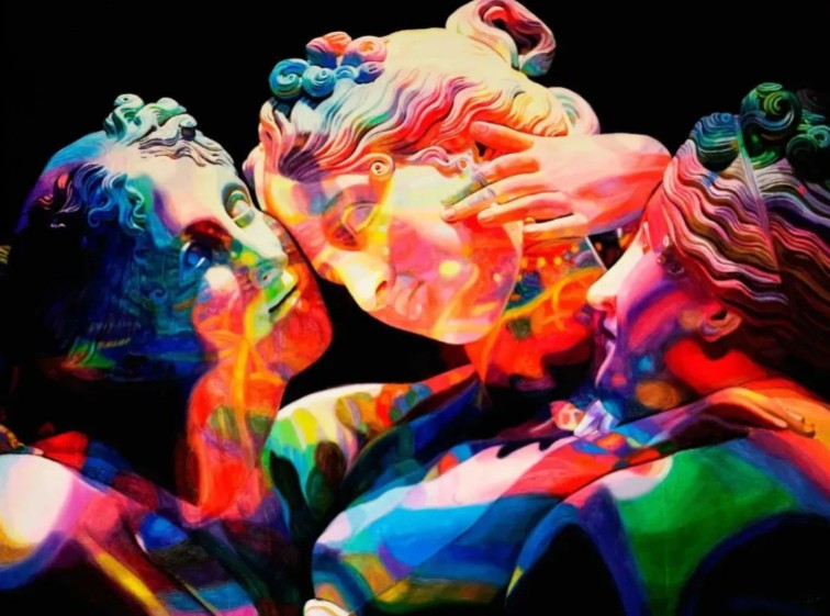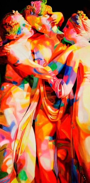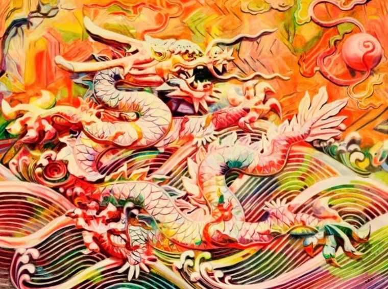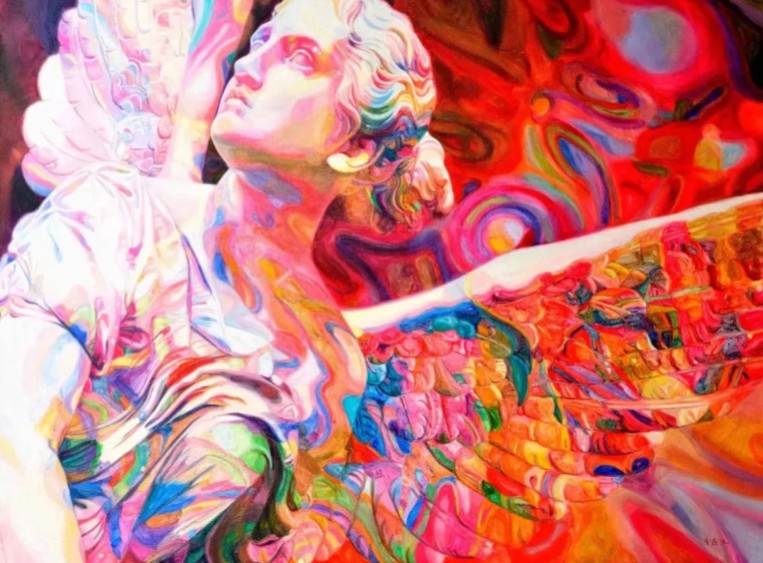 五彩缤纷的竹子既不属于时间,也不属于空间,它是一个独立的、游离在时空之外的精神世界。而《女神》系列,更是将现代生活光怪陆离的气息融入到典雅的希腊女神形象当中,这种新元素与新气息的融入是传统范式与艺术家心性、体验的结合。