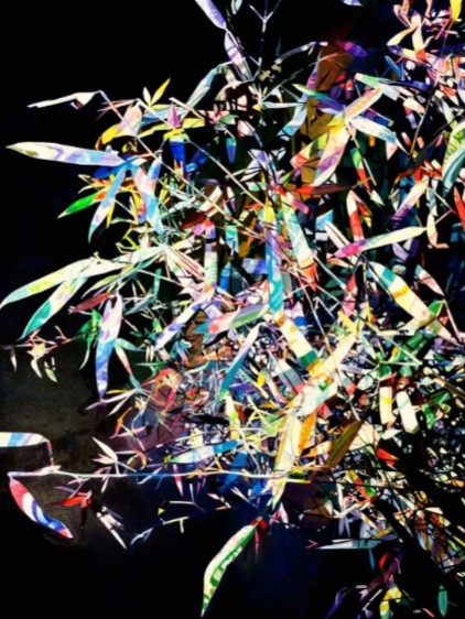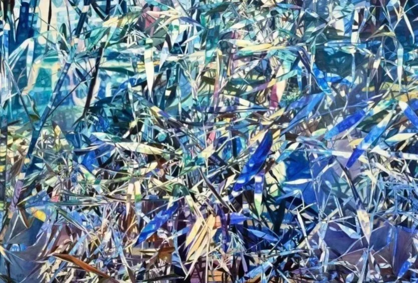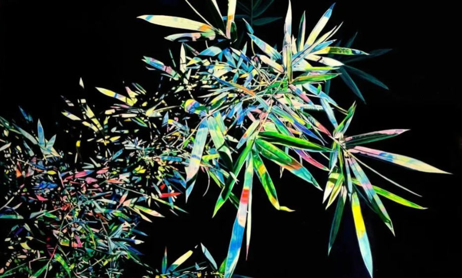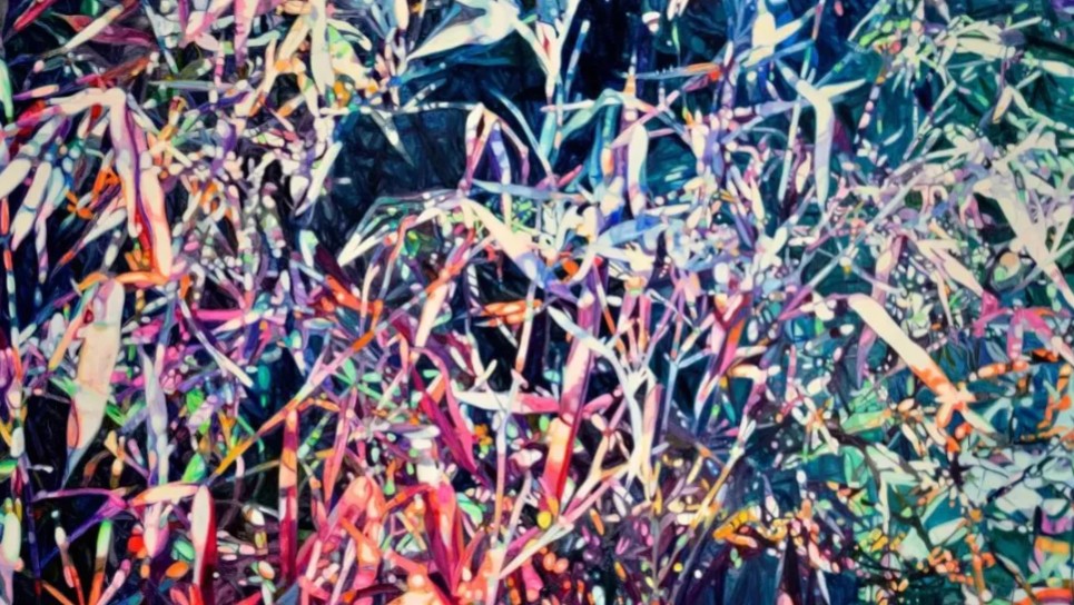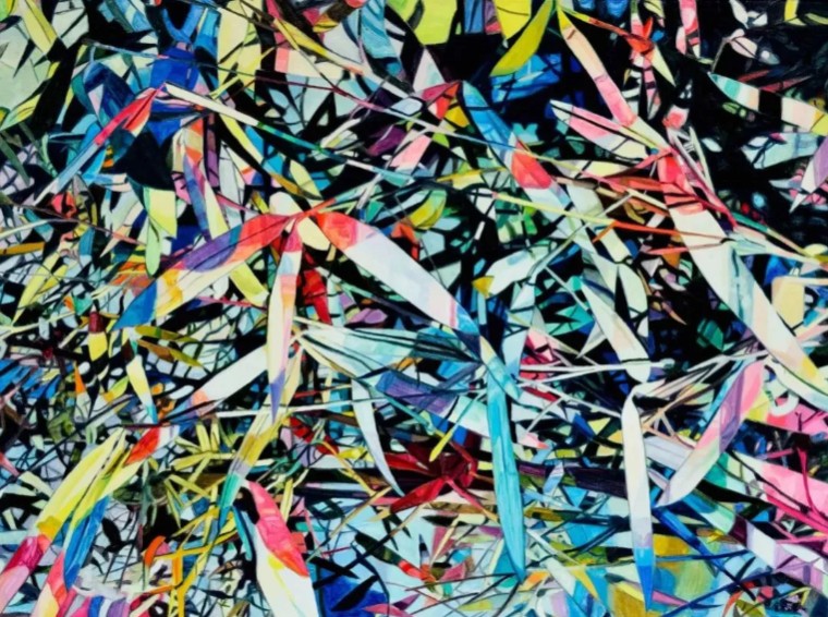 在物理世界中,竹子似乎只有一种颜色,绿色。我们从未见过彩色的竹子。而金鑫波的画面中竹子竟变成粉色,黄色,蓝色...仿佛风一吹,竹叶又会变成风的颜色。“竹子陪伴着我的童年”金鑫波曾这么说。他在竹林中玩耍,竹叶随风飘荡的声音陪伴着他成长。他爱竹,更因爱竹而去探索其更多的可能性。
