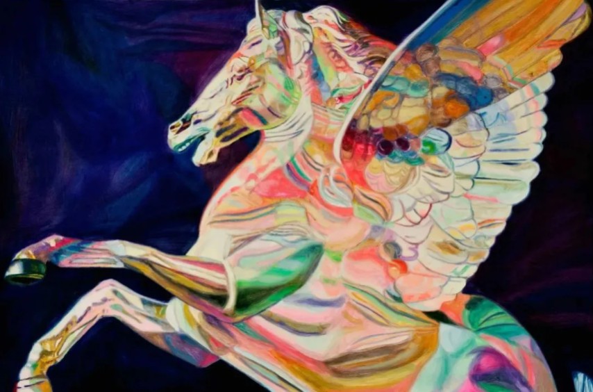 这次的作品在题材上和角度上进行了扩充,加入了古代龙马、古代人物等题材,加上了各种走入式的视角,扩展了他对事物的探索和发现。不停流转的光色在不同的载体之间的传递和变化,好似一个纽带把古今窜连起来,让事物登上了一个个设计好布置好的现代人的舞台。过去的经典也在不自觉的卷进现代的审美趣味之中,经历着一个个审美的迭代。