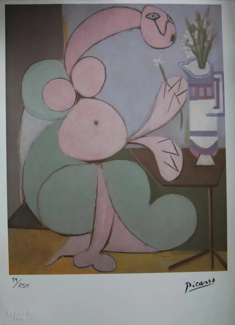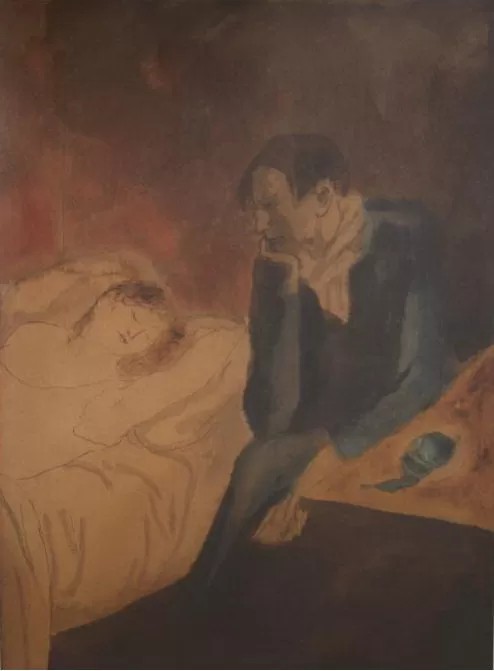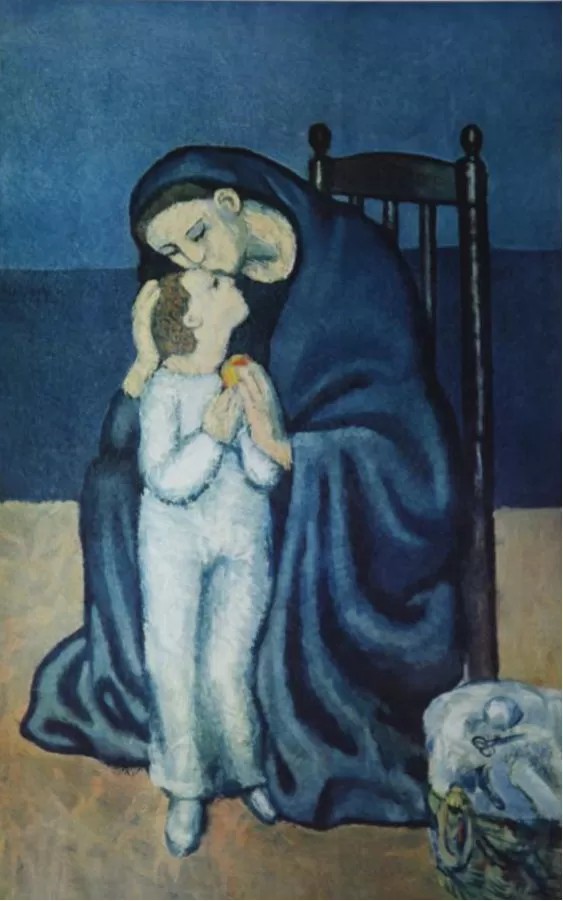 现场您将看到大名鼎鼎蓝色时期的代表作:《母与子》,《死亡案例》。这一时期,毕加索受到好基友卡萨吉玛斯离世的打击,画作色调以阴郁的蓝与蓝绿为主,他说 “因为想到卡萨吉玛斯,我才开始使用蓝色。”20出头的毕加索,有着文艺青年专属的压抑与忧伤。画作中无论是低头深吻自己孩子的母亲,还是颓丧自杀的男人形象,人物的举手投足,绝望的气息扑面而来,挥之不去,感染力极强。毕加索把自己内心对于底层人们的同情、怜悯,全部挥洒在画布上。这正映证了那句话:“艺术投影生活,艺术也源于生活”。