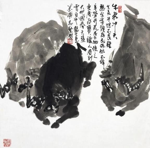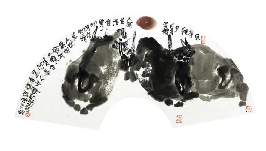 牛 是一个极具民族特色的文化符号,故志坚取“憨牛”为堂号,不失为一种个性艺术精神的写照。志坚意坚如牛,他的写意牛亦如志坚符号,也可称得上湖湘牛精神之代表。