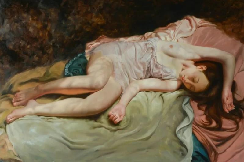 中国写实油画的当代性价值或许就在这里。一方面,展出在这里的写实油画力图拉开艺术再现与相机、手机拍照生成的那种机械图像拉开距离,画家对人物体态的造型性重建、对人物眼神的人性精神揭示以及对光色与时空的想象性建构等,都体现了与机械图像不同的艺术创造;另一方面,这些写实油画力图建立一种新型的审美范示,也即,除了艺术再现所体现的艺术家不同个性的艺术创造之外,溢出这些写实形象背后的是一种时代的美学诉求。像英国工业革命形塑维多利亚时代的艺术一样,中国城市化的蓬勃发展也开始造就精致、缜密、时尚、华美的社会审美趣味与美学范示,而中国写实油画的当代性也便体现在对欧洲古典主义艺术的回潮上,但这种对古典主义的审美寻源,更深刻地体现了中国社会对优雅、精微、单纯、静穆和崇尚的美学品格建构。