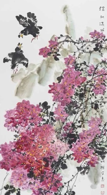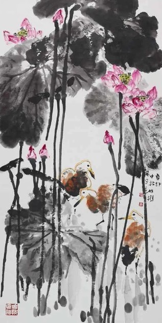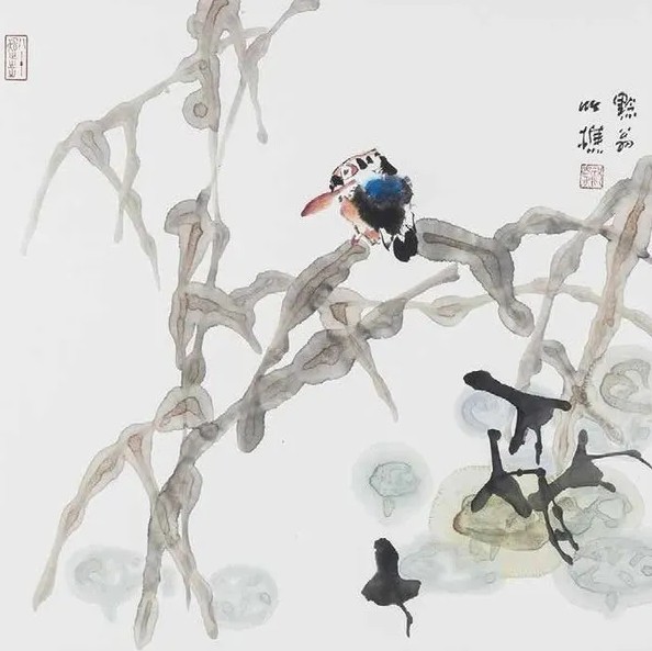 “一花一世界”,花鸟画作为中国文化的重要组成部分,体现了对自然和生命的关照,注重表达人的心灵世界。祝焘先生的写意花鸟在描绘自然物象的同时,寄托了画家自身的情思,使其“得于形、而达于意”。正如先生自己所言:“写意就是要写意境,写诗意,写我意。画画就是要将客观和主观结合,表达自己的意识。”其创作的飞禽、鱼虫,形象灵动、天真淡然,营造出一派生机盎然的和谐景象。