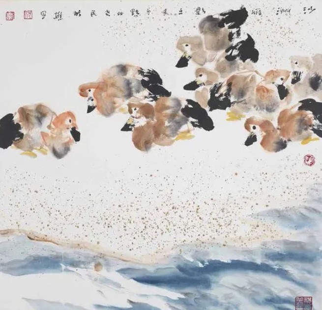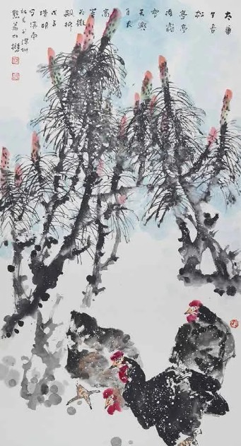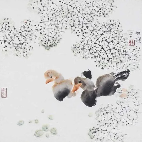 祝焘的花鸟画作品采多家之长而自出新意,表现手法丰富多样,其笔墨凝练生动,皴、擦、点、染结合并用,无论墨色的浓淡干湿,还是笔触的提按顿挫、轻重徐疾都恰到好处,充分展现了先生深厚的笔墨功力与独到的审美意趣。
