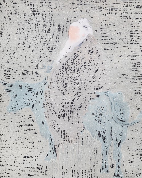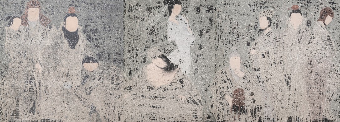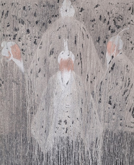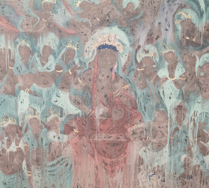 敦煌是中华文明的一座瑰宝,蕴含着丰富的历史、艺术、文化资源,敦煌由历代中国人的智慧结晶而成,也为历代中国人提供了不竭的精神财富。袁小楼以他对传统壁画、古代岩画、佛教文化的研究,用艺术的形式参与到对敦煌的文化解读中,他所采用的沟通方式既有飞天、造像等敦煌壁画形象的写意表现,也有矿物质壁画原料这种绘画媒材的工具实验,以此勾连起他与敦煌的对话。