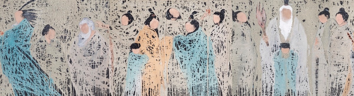 中国传统哲学思想是中华文化的重要组成部分。先秦诸子的哲思理趣奠定了中华思想的根基源头,形成了独具特色的中华文明形态。作为中华传统思想中的主体体系,儒、释、道三家以不同的核心理念构筑起中华思想的基本面貌,千年赓续而成为了中国的发展之道、相处之道,中国人的人生之道、生存之道。袁小楼用他的绘画语言,以先贤哲人为对象,表达了他对中国传统思想的理解,以及对传统美学的重新挖掘。