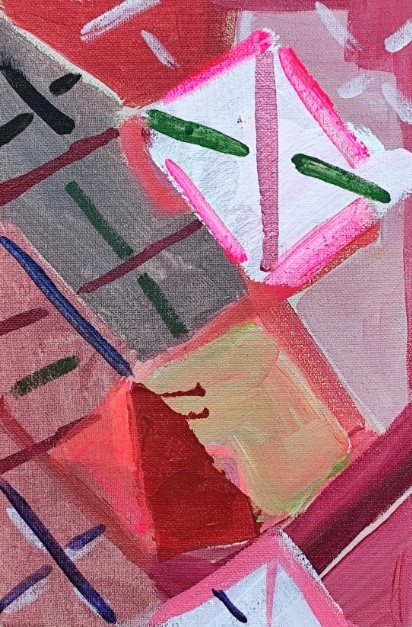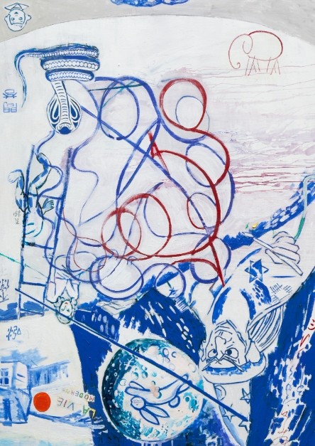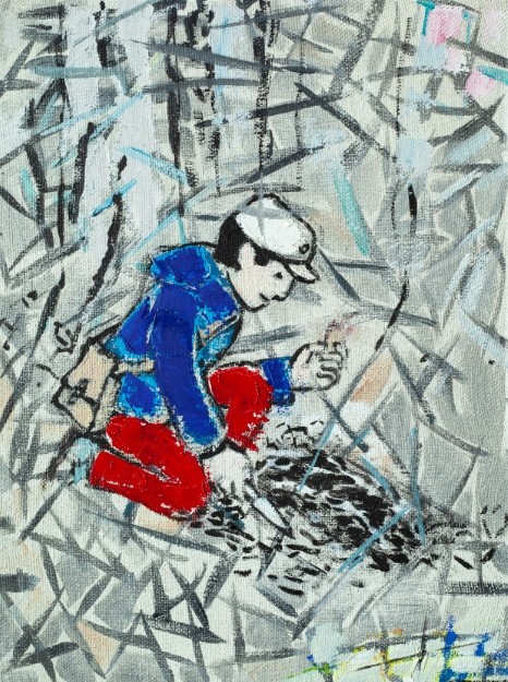 盛天泓就是这样一个旁观者,冷静隐忍旁若无人,物必有专攻,在绘画的耙犁中,他无疑也是最老辣的猎手,就像作品中被肆意打破的界限,对于不需理解的艰涩,以及对叙事的无视和偏见,对无望误读之迷恋,缺失的语句,欲隐还现的草稿般的复线,看似荒芜的画面布满玄机,美妙之物偏偏喜爱以曲折的方式呈现,一切便都显得迷雾重重。有的只是守株待兔,若有其事的等待高手间刹那的电光火石般的过招,逼格高悬的作品,蕴含的是最艰涩的喜悦,非明眼人不能揣其端倪。