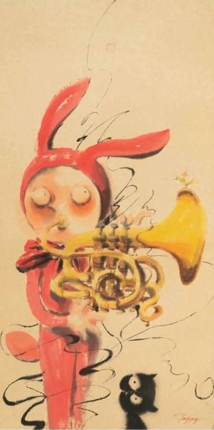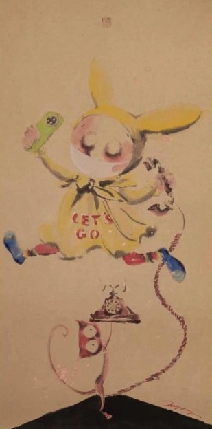 曾勇先生的绘画作品中充满了诙谐的童趣,