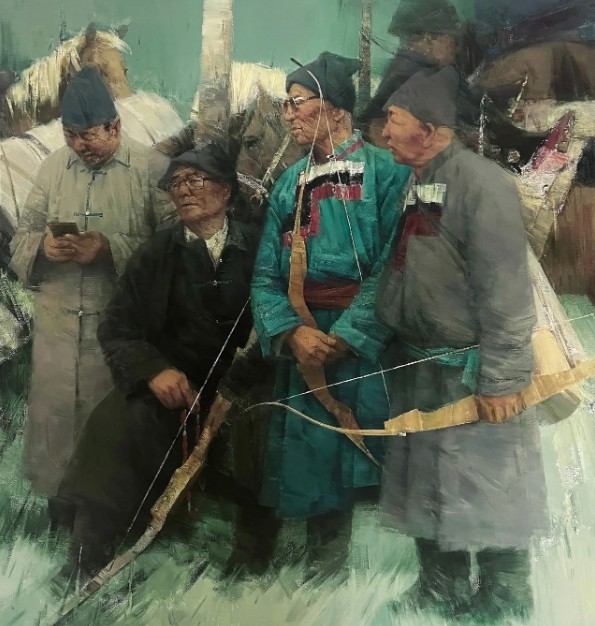 在上个世纪,内蒙古的雕塑力量还比较薄弱,老一代的文浩、60年代分配到内蒙古的王济达......可以历数的寥寥无几,但在近二、三十多年来,特别是自雕塑系成立以来,聚集和培养了一批中青年雕塑家,他们虽然没有油画群体的辉煌历史,但他们的艺术水准和进取精神和油画群体呈齐头并进之势,陈列在展厅空间的雕塑作品与墙面上的油画作品相映成辉,共同构成了这个展览的整体阵容。如一股北疆吹来的清风,在云上美术馆散发出北方草原的特有气息。