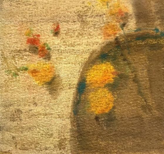 邱丽娟,22岁,一个爱笑的女孩。她从女性视角解读人体艺术,尤其是女性人体艺术,斑驳的皮肤肌理与大面积的猩红的背景融合,女性肢体的线条刚硬,并组合为分明的块面与明暗,每幅作品都饱含充沛的创作情感,独具个人创作魅力。