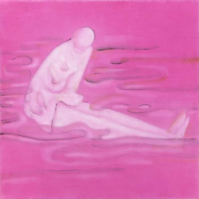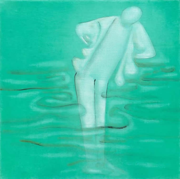 这些敞开怀抱拥抱世界的女性形体,既充满了野蛮生长的感性活泼,又充分沉浸于莲池的花瓣荡漾,不就是“凌波微步”的当代表达?不就是水融天下的艺术真谛?莲花已非莲花,人性已非人性,经过艺术家很多年对于形体分解与融合的实验,其带入色彩的变形记有着一个中国艺术家独特的万物拟似的感通。而现在,在绘画上,一切都融入水,人步入水中,沉浸期间,花如人,人如花,但花与人都如水,一滴滴水珠,进入微光之波的无尽振荡。在画家独特色彩与质感处理后,在具有明显中国色调与中国玉质感的技艺转化后,都宛若珠玉,透明晶莹,又彼此透映,宛若佛境。