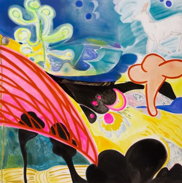 “ automatic ” scribbles on a canvas that slowly morphs into a mental landscape, hoping to“achieve some sort of meditation and psychological dialogue that exists beyond reality.”