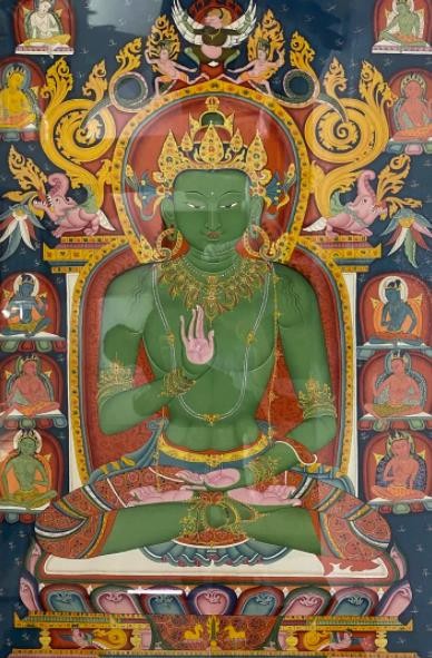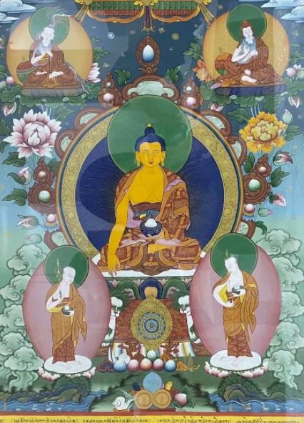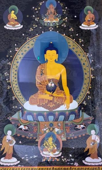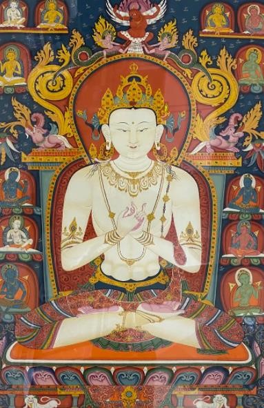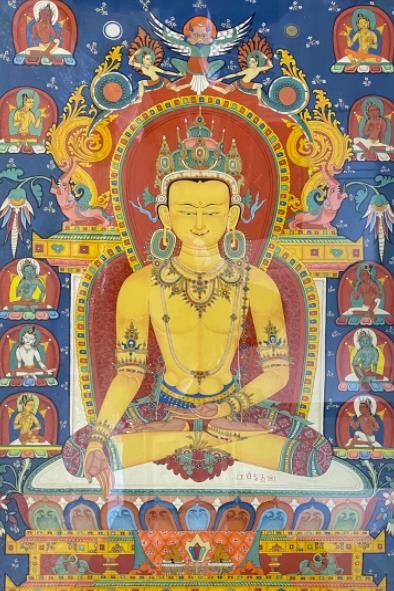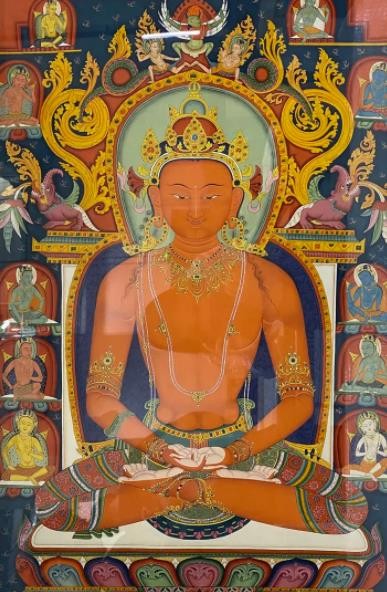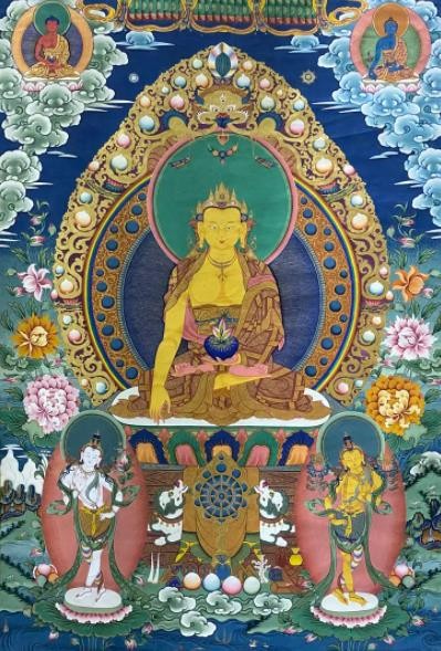 唐卡艺术兴起于佛教文化传入西藏之后,在其上千年的发展传承历史中,伴随着佛教文化在西藏高原的弘传和外来文化艺术的交融,唐卡吸收、融合了汉、藏和南亚等多种地域文化的艺术元素,不断的注入西藏本土特有的审美观念和技法,形成了极具雪域特色和审美价值的艺术形式。唐卡主要以藏传佛教题材为主,如诸佛、菩萨、罗汉、护法、教义教法、祖师源流、宗教故事等。