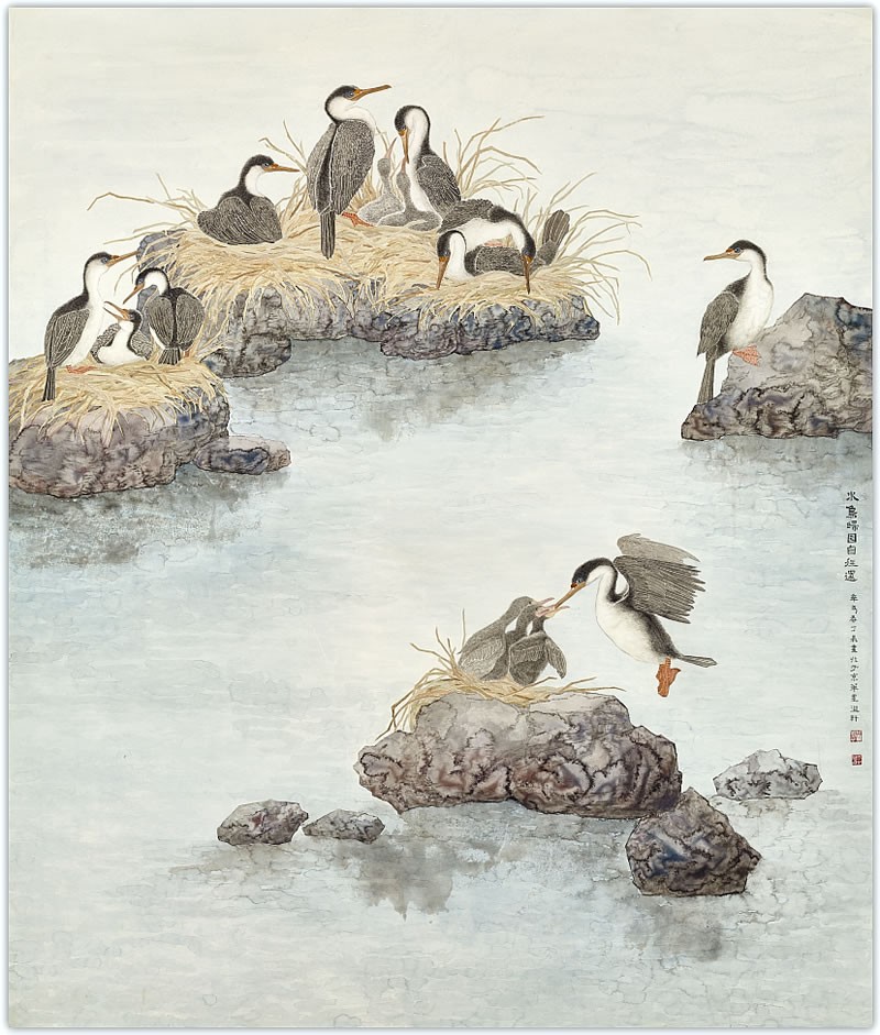 家世家风,耳濡目染,丁鼎作为女儿汲取父亲之传承,她另辟途径,专攻花鸟,寄情于墨。她吸收历代花鸟画之优长,同时又着重地表现一种人性关怀,从细腻的女性视角出发描绘花鸟之情,展现了对自然的向往与爱,其作品具有净境之美。在颜色处理上,在构图方式上,都有年轻人的新视野,其笔墨内敛,清颖率意,轻松有致,在传统的文脉基础上呈现出自己独特的风格面貌。