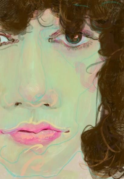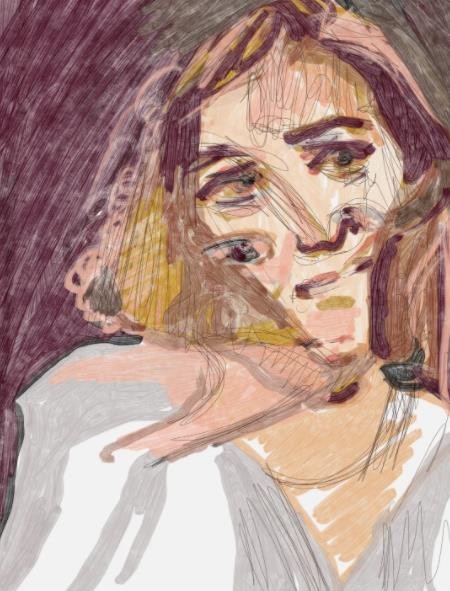 回溯过往的艺术训练和人生经历,美院时代即开始的对人物画的兴趣,期间那些锻炼即时捕捉人物瞬时特征与动态能力的大量人物速写,哲学课、考古课的影响——事物的对立统一关系、考古案例引人入胜的故事性和专业技术性的结合,毕业后一段时间的儿童美术教育实践,数次西方旅行、游历的美术馆见闻和对南欧小镇明丽景致的印象,职业女性、母亲、创作者多重身份的转换与重叠……这些经验和记忆,在王蓓祺近作的画面上或隐或现,构成一种底色或基调。那些常常被置于单色背景上的人物,无论是画家身边的朋友还是社交网络上的熟脸,因着自由随性的线条、对比强烈的色彩和简洁概括的构成,显得鲜活又有些陌生。从大学时代起一路喜欢过来的艺术家如卢西安·弗洛伊德、埃贡·席勒、大卫· 霍克尼、马琳·杜马斯、彼得·多伊格等等,则在不同的阶段提供了她艺术思考与绘画创作的营养。个人、生活、城市、时代,这些并列时都是些大词的语词,当艺术家从一己的真实感受和体验入手时,则在画面上被具体化、形象化和形式化了,无论是使用传统的画布颜料还是借助IPAD绘画软件的绘制,工具不同产生的部分视觉效果差异外,作品所传递出来的气质与趣味体现了这些语词在此时此刻此在所指向的含义。