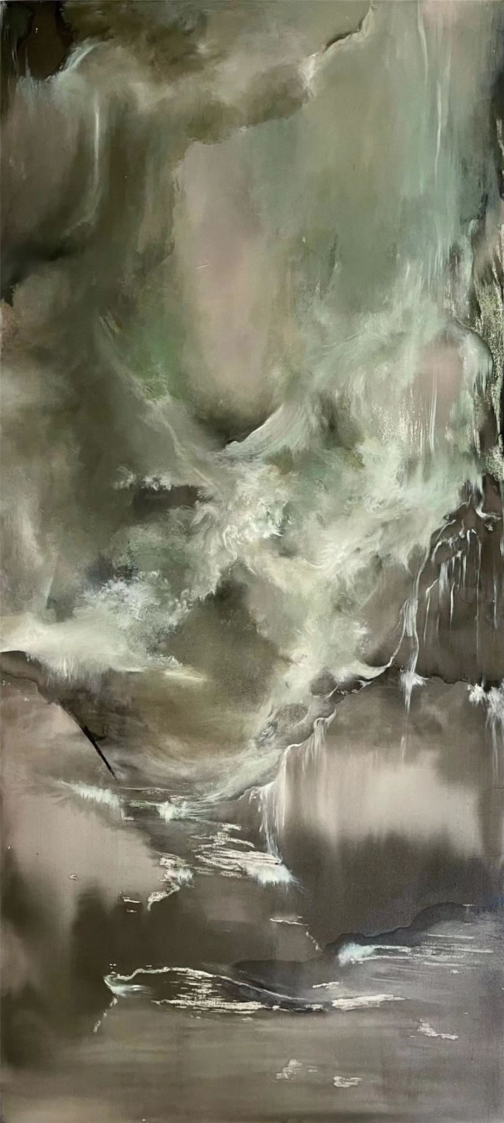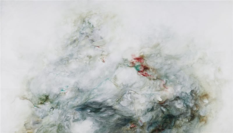 随着对“自然景观”思考,自然在张蒙眼里不再只是具体的形态或纹理,还有内在的生命感、涌动。气之流动、山势的起伏、空气的清浊,更能触动张蒙。《境景》系列创作是张蒙对内心“境”的一种映射,没有具象的参照物,甚至没有过多思考的余地,更多是想保留和放大很纯粹的直觉反应和内心感悟。