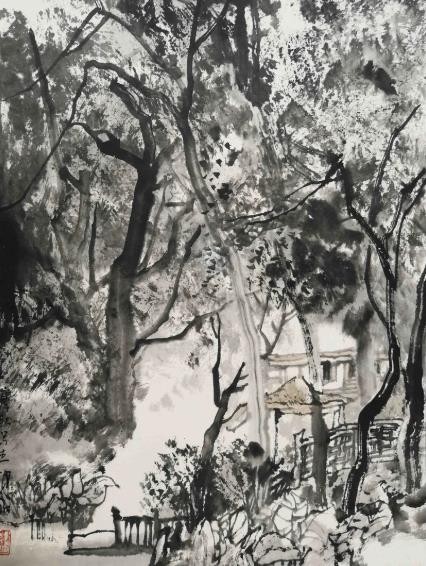张家界奇峰怪石,山云变幻,观之动情,写之有意。十里画廊一路景,搜尽奇峰觅佳境。风轻雨柔观云起,纵揽群山染丹青。重庆合川,三江汇合,有远古文化的积淀,也有山川水色的灵感,雨中即景,得天意妙趣,烈日当头,也画意绵绵。河源写生,退休后第一次带研修班远行,非同平常,多了一份责任,和年轻人一起同行,有快意的交流,教与学之间的互动,更多的是乐趣。或许是责任的驱动,近似"魔鬼营训练"的方式让我自身也感受良多。接下来的博罗写生和坪山写生,同样是带班,不一样的对象,不一样的感受,有不同的体验。平日的我喜欢远行,未曾想到近在咫尺的岭南如此引人入画,草木生情,山水亦然。河源万绿湖的风光,博罗罗浮山的深情,坪山马峦山、大万世居的留痕……,感受岁月静好,体验笔墨意趣。