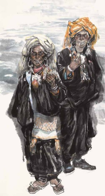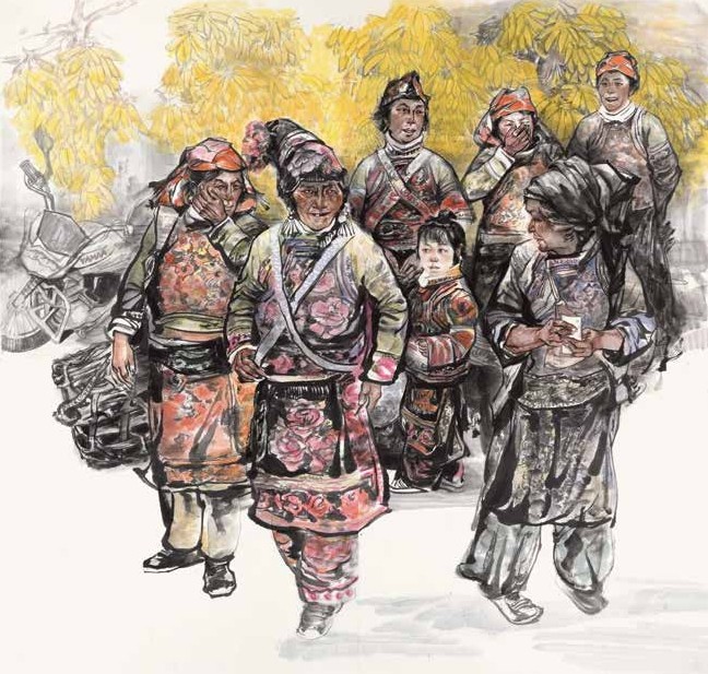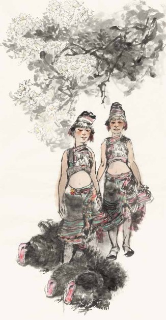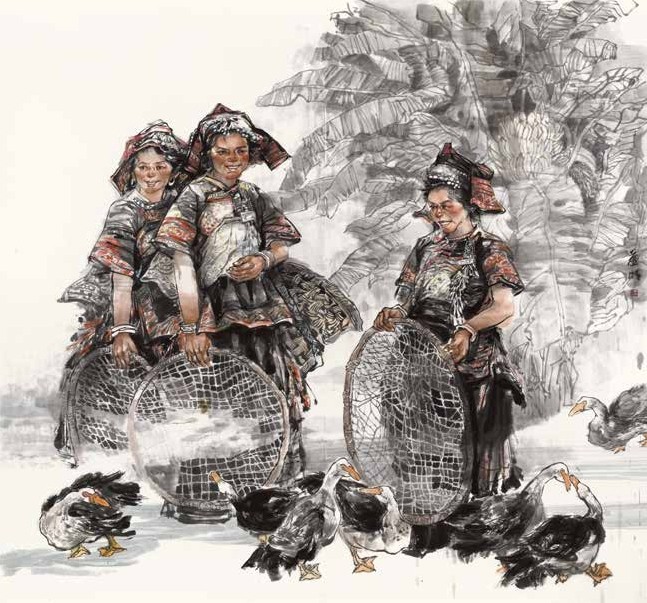 庞飞和黄庆明自小在一条街上打闹嬉戏,快乐成长,言和意顺,因为对于绘画的热爱,成为好朋友。有缘的是,两位从小一起长大的好朋友,在历经几十载的艺术耕耘后,居然都以中国画创作成就自己的艺术形象,成为中国画名家。其内心深藏着对艺术的执念。怀揣对中国文化传统的崇敬之情,二人一直笔耕不止,栉风沐雨砥砺行,勤奋地研究笔墨语言,尝试突破局限,创造个人的中国画“造型艺术图式”。任光阴荏苒,唯初心不变,秉初心、遂人愿,两位好兄弟都在中国画领域创出了一片空间,其中一人钟情于山水,而另一人则挚爱人物。二人游云南的山水、揽云南人文,悠游其中,任由自然滋养,感悟民族风情。