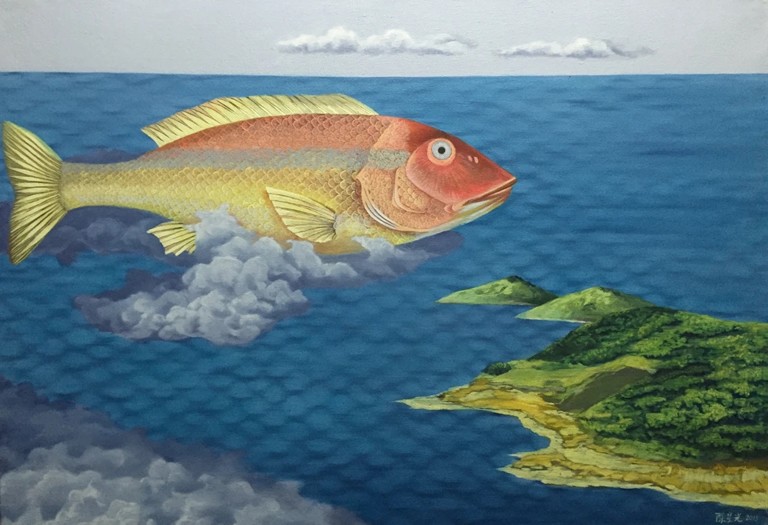 陈星光以奇幻笔触勾勒星子般的绚烂,让锦鲤游过银河般的色块,繁花绽放出星云的璀璨,将宇宙的浪漫揉进传统符号;李泽嵩却以剑客般以洒脱的姿态拥抱大地仰望天空,带着决绝的爱意,如山脉托举星空,让人文质感在广阔意境中沉淀,似星河映照故土。