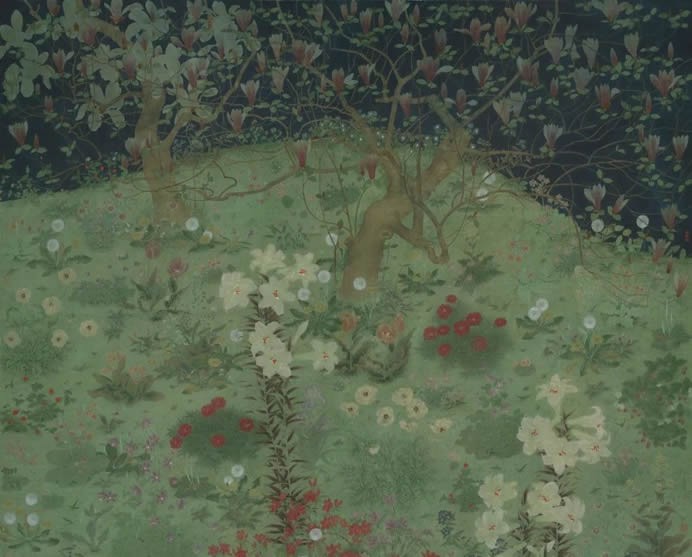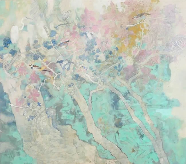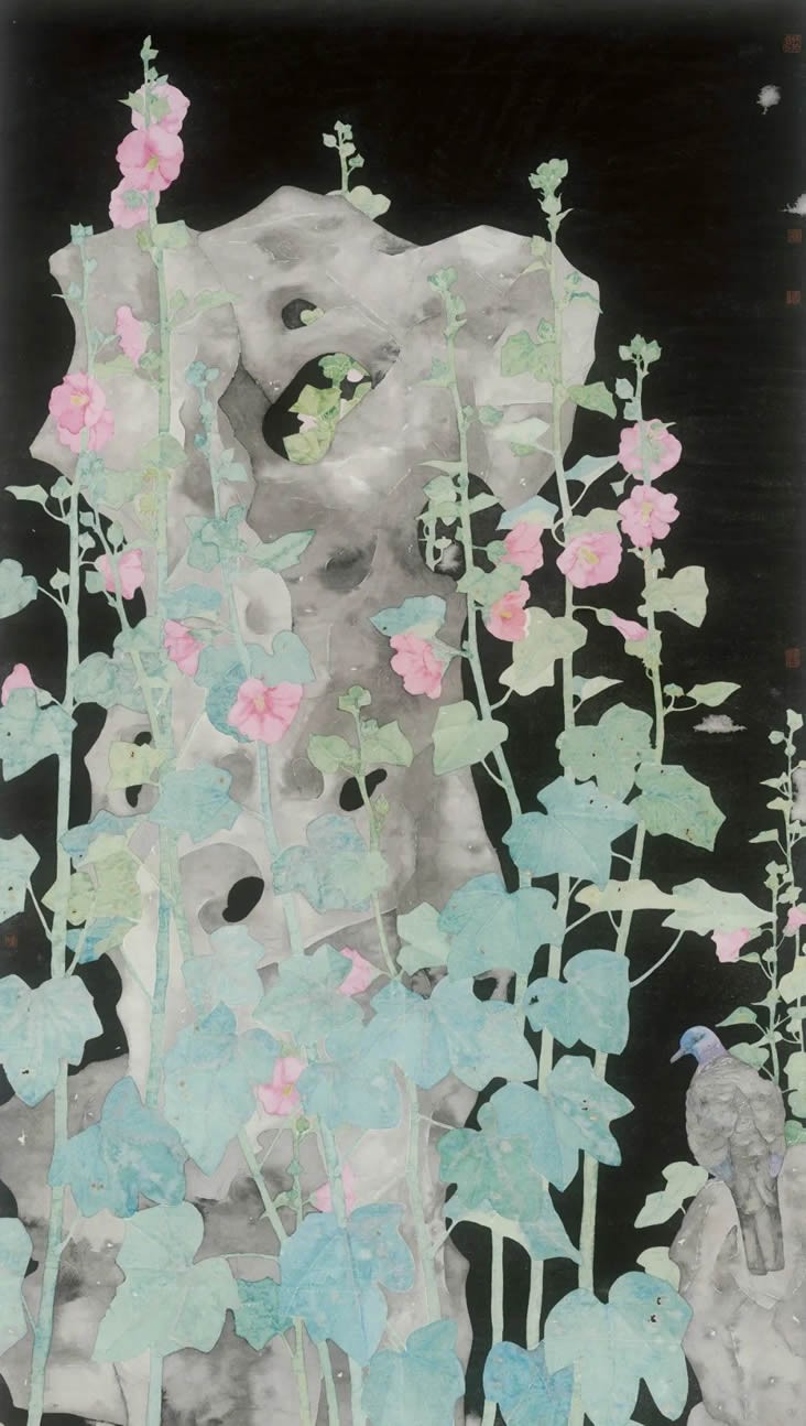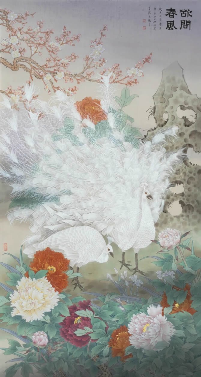 “花间集”其意深远,是对“花鸟”这种艺术主题的诗意诠释。花与鸟,是自然界之灵境,是生命之华章。在中国文人的精神谱系中,它们从来不只是客观的物象,而是情感的寄托、哲思的载体与人格的映照。展览的作品,更是艺术家与自然的深情对话。工笔的极致精微,并非对自然的简单复刻,而是以超凡的耐心与虔诚,将一花一叶的脉络、一羽一翎的光泽,升华为一种精神的仪式,既是形态,更是气韵。