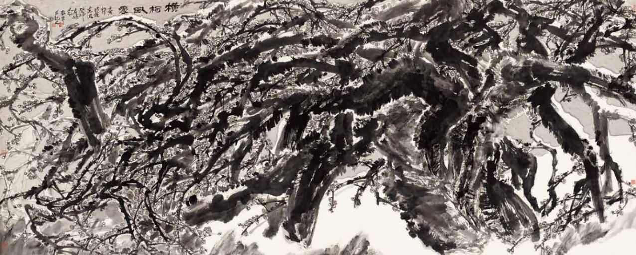 人过中年,相逢不易,我和震西、雪松、政和、华平诸位,常在晓生兄感招下去广东诸城办展,受到诸多兄弟支持和帮助,实乃人生一大乐事。他们的作品,能在李明兄的雍阳美术馆展出,自当精彩异常。此展还得到王明明院长首肯,欣然提笔书写“花木清嘉”,更是提升了画展境界。当其时也,即能观画相互切磋,又能欢聚借酒抒怀,必其乐无穷。想及此处,心情不禁更加迫切起来。