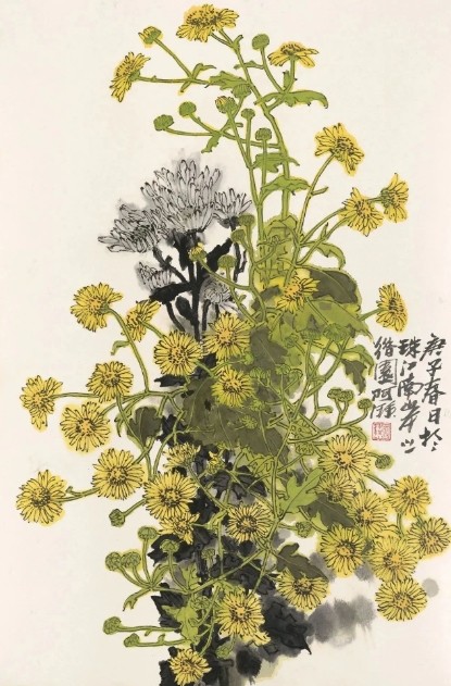当然,朋友相逢,喝酒又不仅仅是喝酒。所谓醉翁之意不在酒,对花鸟画家来说,醉翁之意就在这花鸟林木之间也。饮一杯酒,就是嗅一朵花香,听一声鸟鸣,这是花鸟境,也是人生境……
