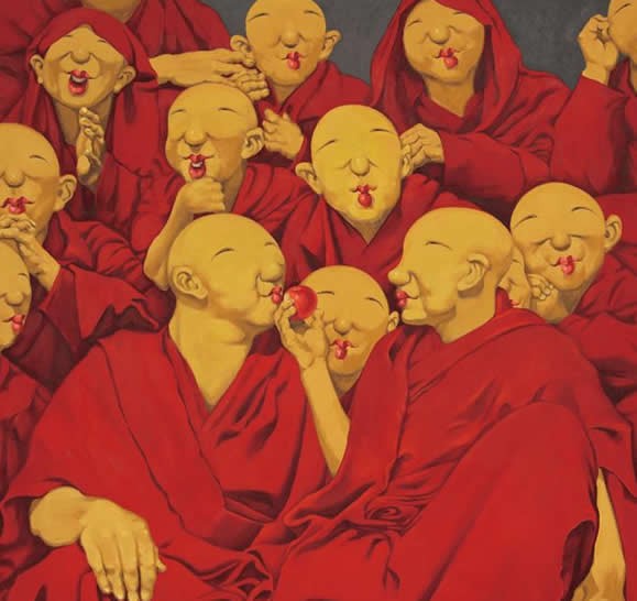 这次展览是钟小敏旅居日本以来的第一次个展。钟小敏的艺术作品表达的是用自己的人生经验和感悟,寄宿在红色喇嘛形象中以欲阐述。这次展览的多数作品是他移居日本后创作的油画作品。作品共20多副。其中有16米的【云的世界】和6米的【新五百罗汉】。其他多数是100号左右的作品。欢迎大家光临观赏!