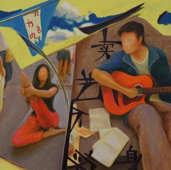 他所追寻的自由,是人生的体验和绘画艺术的独立。这些年,刘乐打一份工,够一个人吃住、够买画材、够租房生活,这已让他很满足。