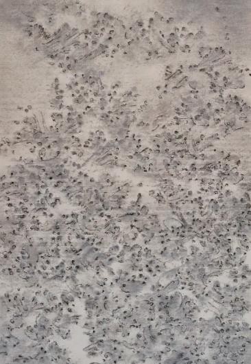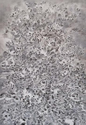 “我给你我的寂寞,我的黑暗,我心的饥渴; 我试图用困惑,危险,失败来打动你。”多年前兀鹏辉的工作室就在离我不远的环铁,他经常来798看完展览就走过马路来和我聊聊天,我们也会在天气好的时候傍晚开车去看他,他工作室门前有 棵石榴树,有一年秋天我们聊到深夜,告别时月光如水照在那个石榴树上,我 顺手就拧了一个石榴带回来。 那时候他在画纸上的一批画,很古典的色粉笔材料,那几年他都埋头在纸上, 花那些枯黄的草地上的杂草,凌乱、衰败,是趋于冬日将近的消散的美。