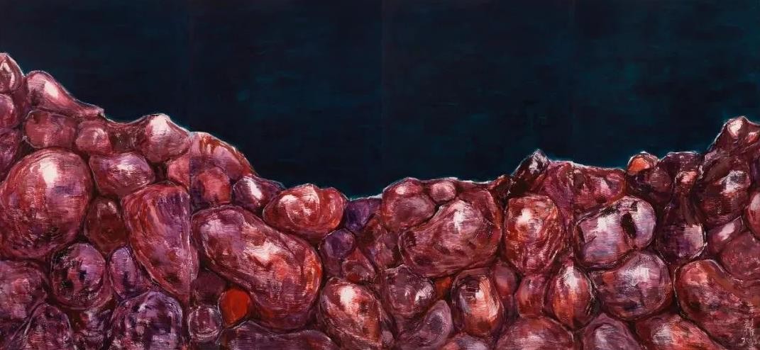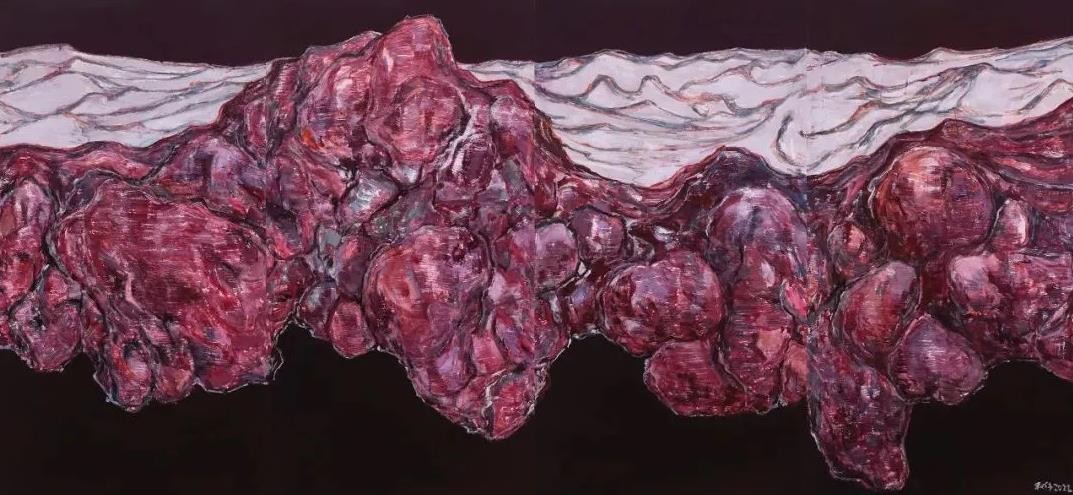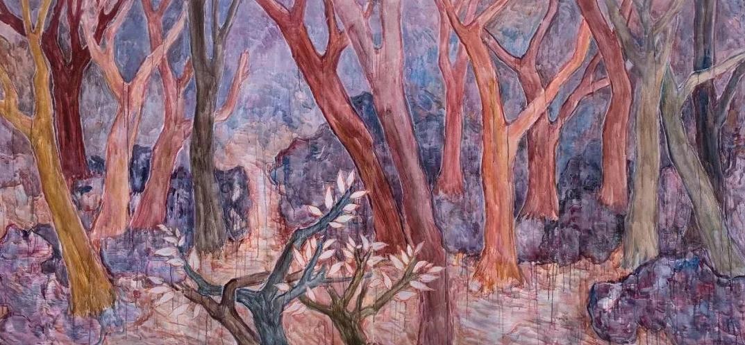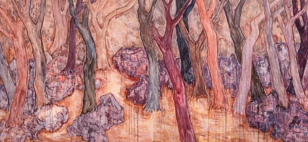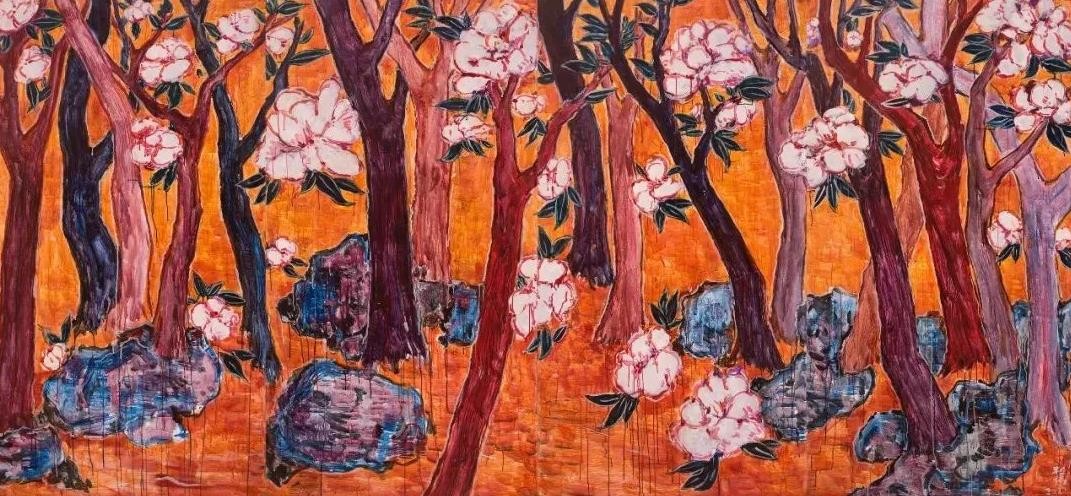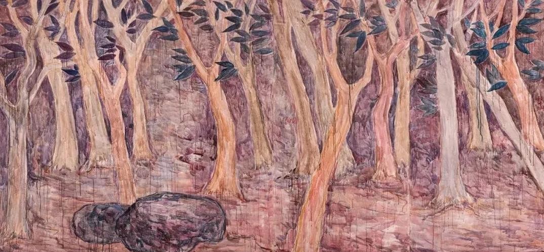 随着当代艺术的中国转向,具有明显的“中国性”的观念、题材、媒介和技法的作品越来越多,其中以园林或者园林元素为题材的绘画、雕塑、装置、影像作品尤其引人注目。郭利伟也以园林为题材创作了不少绘画作品。与大部分以园林为题材的创作基于实景写生不同,郭利伟的园林没有实景作为基础,画面完全是他自己编造出来的,而且据说他画画从不起稿,不管多大的画幅,他画起来都像跟着感觉走的即兴涂鸦,因此画面跟某种精于设计的超现实主义作品也不太一样。