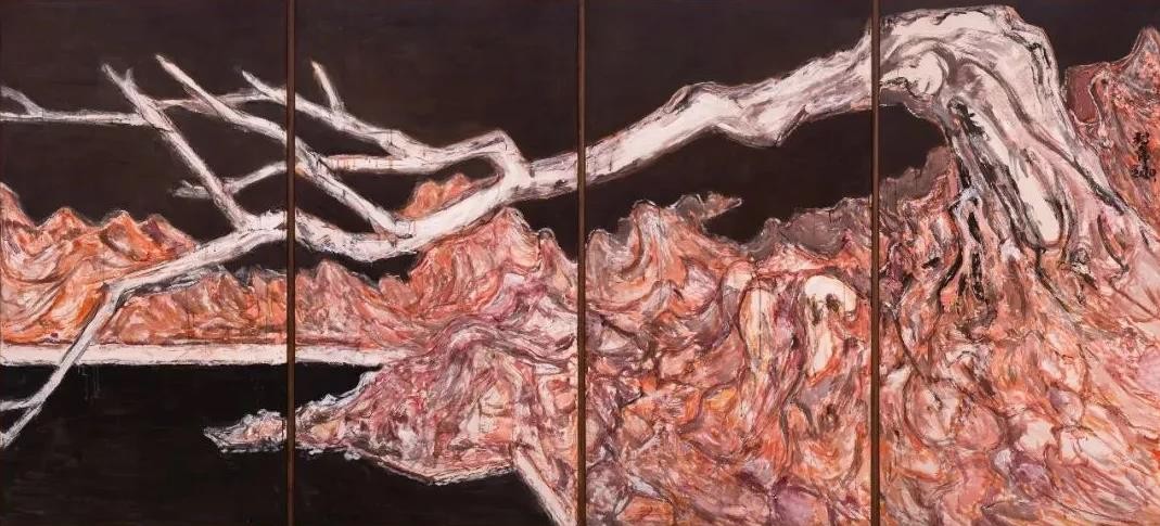 我的疑问由此而来:郭利伟为何如此不知疲倦地画这些大画呢?他要通过绘画来传达什么信息呢?当然,我们可以像现代主义美学教给我们的那样来回避这个问题:绘画就是绘画,跟绘画之外的一切因素都没有关系。就像现代主义绘画高潮时期的批评家罗森伯格告诉上世纪五十年代的纽约观众那样:绘画的目的不是再现外部世界或者表现内心世界,而是展示自己的行动。画面上显示的,只是画家的行动的痕迹而已。但是,如果用这种理论来解释郭利伟的作品,观众恐怕难以满意。的确,观众在郭利伟的画面上看到的,也是他作画的行动留下的痕迹。通过这些痕迹,观众或许也可以想象他作画的行动。但是,这无法确保这种作画行动的正当性:为什么郭利伟作画的行动就值得我们去欣赏?为什么观众自己的行动就不值得欣赏?留下痕迹的行动很多,为什么只有画家留下的痕迹值得欣赏?这个问题在罗森伯格那里构成的挑战没有那么严重。罗森伯格的行动理论针对的是抽象表现主义画家,这种理论在解释抽象表现主义绘画的时候似乎没有遇到太大的困难。众所周知,表现主义画家在画面上展现的就是他的自由的即兴行动。观众欣赏抽象表现主义绘画,不是因为从中看出什么外在世界或者内在世界,而是通过绘画的痕迹想象画家的行动,甚至模仿画家的身体运动,就像欣赏舞蹈一样。不过,罗森伯格的理论也经不起深究。如果观众通过画面上的痕迹欣赏的是画家的行动,那么如果有别的方式欣赏画家的行动,画家也就无须作画了。例如,舞者可以用自己的身体展示自己的行动,这种展示比通过绘画痕迹去想象画家的行动要直接得多。当然,我们可以用持久性来为绘画做辩护。画家在画面上留下的行动痕迹是持久的,舞者用身体展示的行动是瞬时的,会随着行动的终结而消逝,因此无法超越时空的限制为更多的观众所欣赏。但是,随着录像技术的日益普及,舞蹈有了自己超越时空限制的办法。这就让我们今天用行动理论来辩护绘画大打折扣了。或许有人会说,绘画痕迹展示的行动毕竟不同于舞者的身体运动。从经验上来看的确如此,尽管要说清楚它们之间的差异并不是件容易的事情。不过,就算我们承认绘画痕迹展示的行动不同于舞者的身体运动,这也不能挽救绘画行动理论。尤其是在我们所处的这种崇拜书法的文化中,如果就展示行动者的行动来说,书法比绘画要方便得多。郭利伟热爱书法,如果只是要留下自己行动的痕迹,他很有可能只是写字而无须作画。