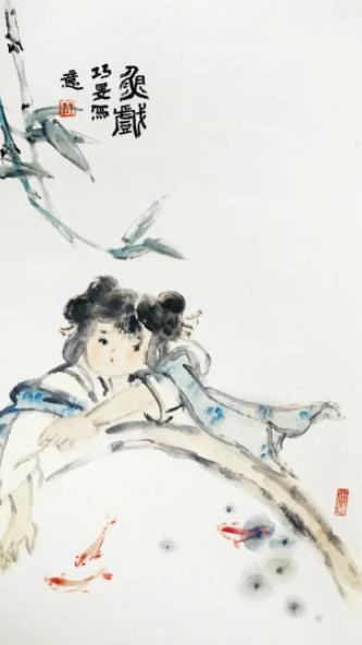 《鱼戏》 巧旻 34x60cm 2021年 纸本水墨