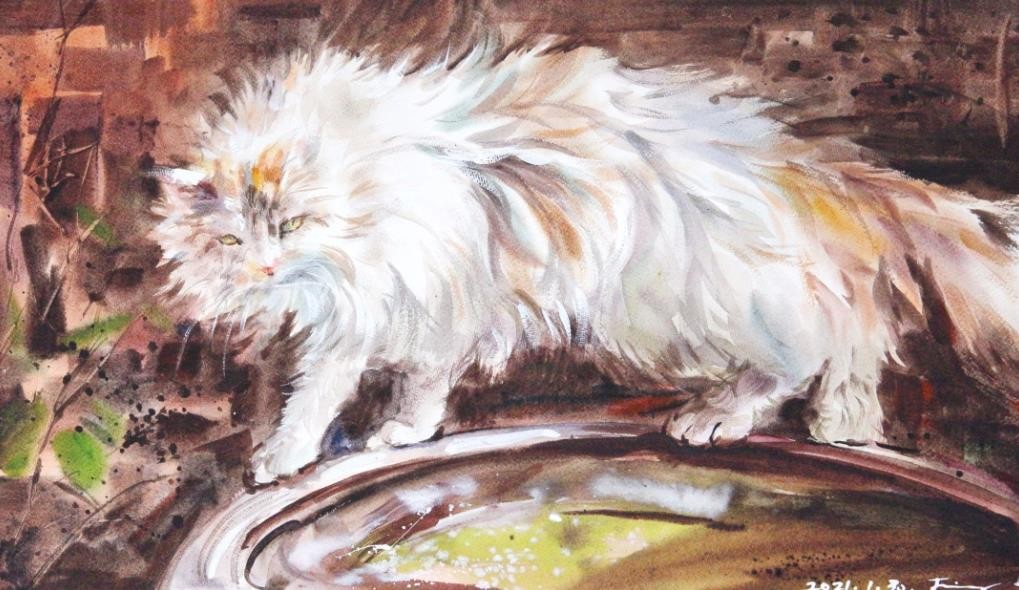 《巡视》 荆银莱 35x60cm 2021年 纸本水彩
